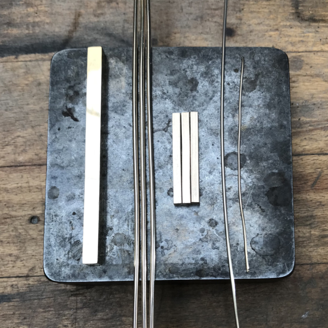 I recently completed this pretty set of three name bangles spelling out my client’s children’s names. Here is a snapshot of my making process in the studio at Cockpit Arts, London. The process starts with solid 9ct yellow gold bar which is shaped and stretched to the correct diameter by me in the studio.